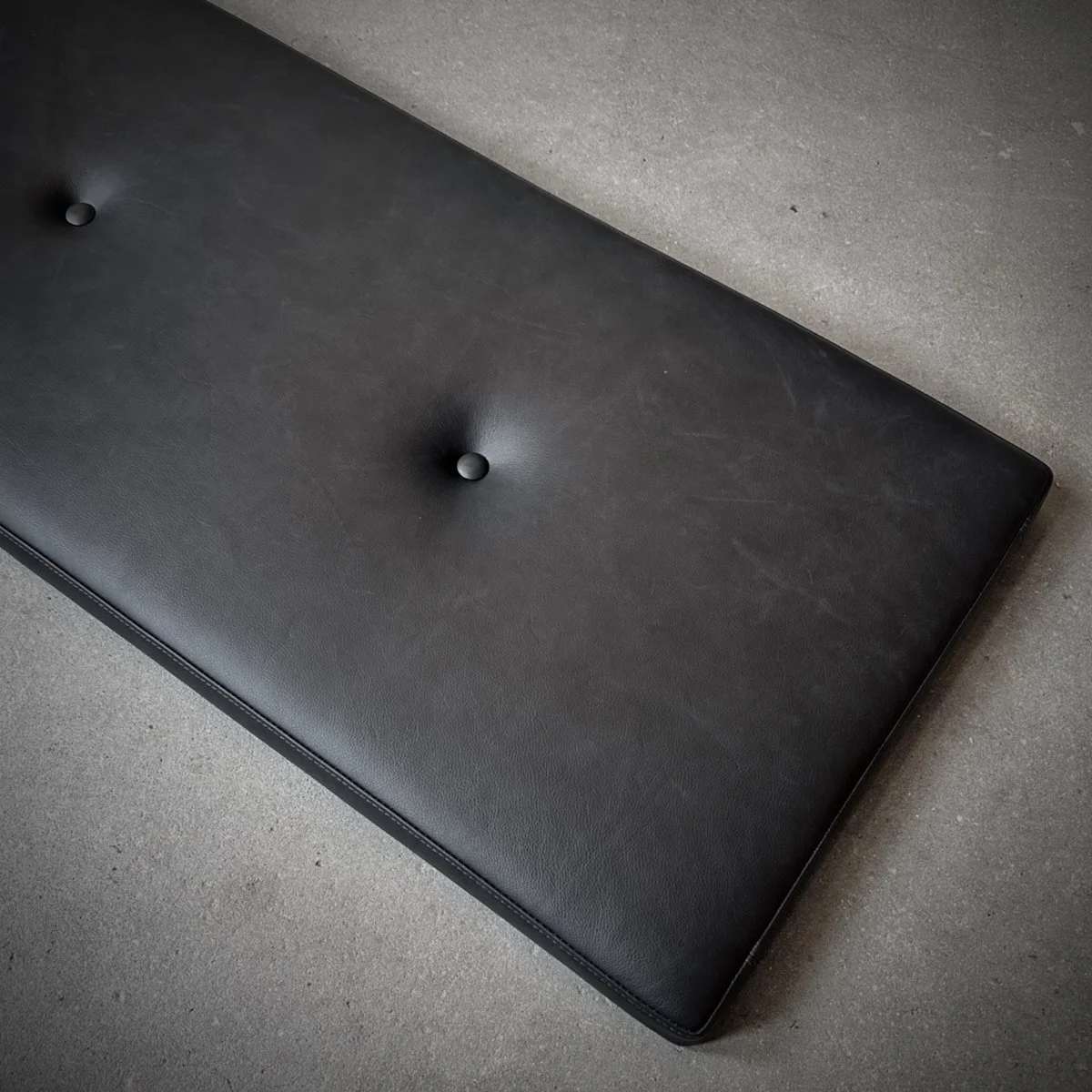 Fremstilling af fast læderhynde på specialmål L 120,0 x D 50,0 x H 5,5 cm